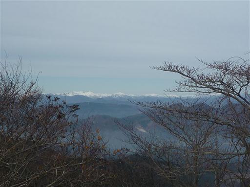 この山からはほとんど展望が開けない。一番左に見える山が烏帽子ヶ岳だ。