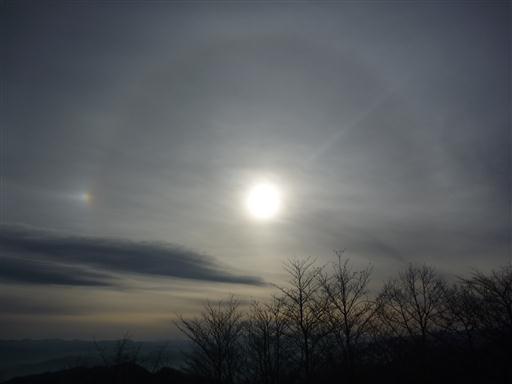 太陽が笠をかぶっている。左に光っているのは恐らく幻日だろう。
