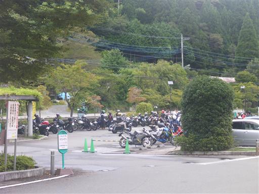 まだ朝早いが駐車場はバイクで一杯だ。