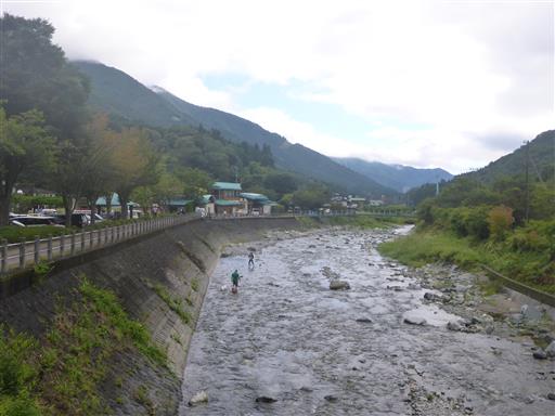 道志川を眺める。ここは昨年川遊びをした場所だ。