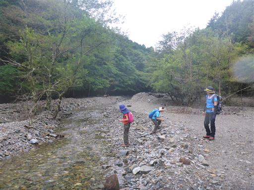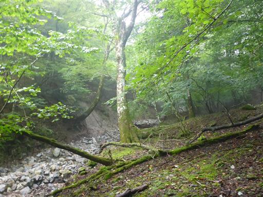 川の中や右岸左岸と登山道は場所を移すため、ルートを追うのが難しい。