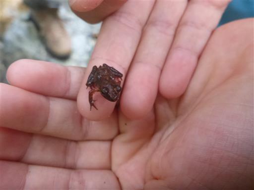 再び菰釣避難小屋まで戻ってきたとき、避難小屋内にいたヒキガエルを救助する。