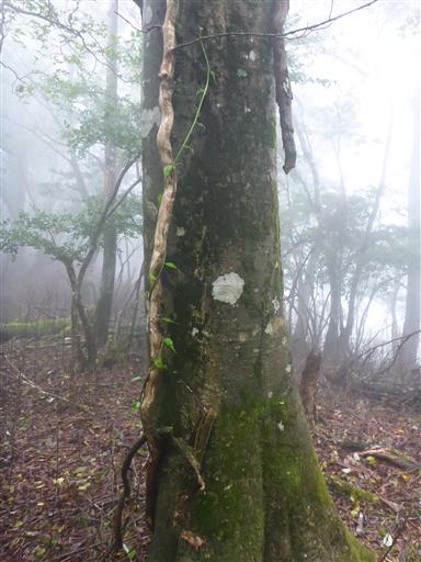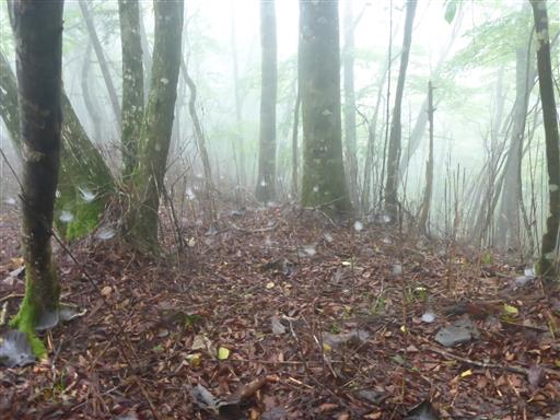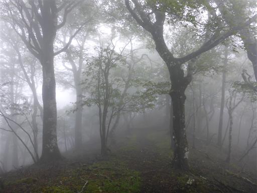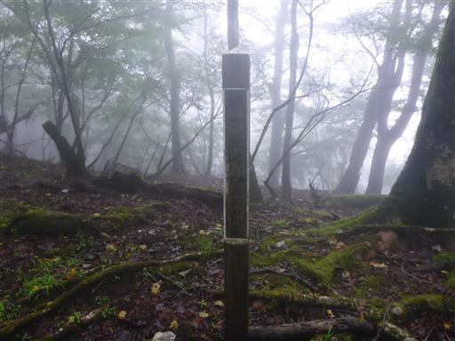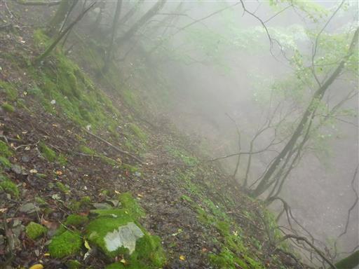 完全に雲に覆われた道を歩く。展望は全くない。
