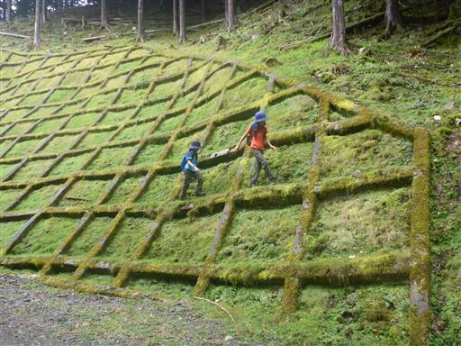 子供達は法面歩きが羨ましかったのか、あえて法面を歩いている。