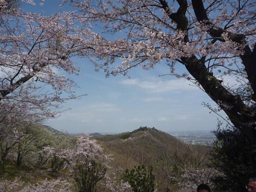 奥に見える弘法山まで桜の花が続いている。