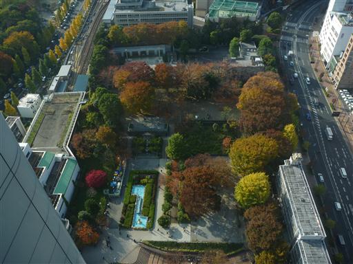 眼下の公園。紅葉が美しい。