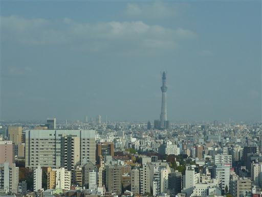 建設中のスカイツリーは意外な近さだ。