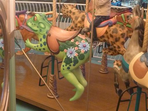 カエルのお尻から鳥の首が出ている…。何やら謎なメリーゴーランドだ。