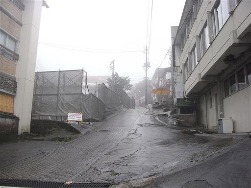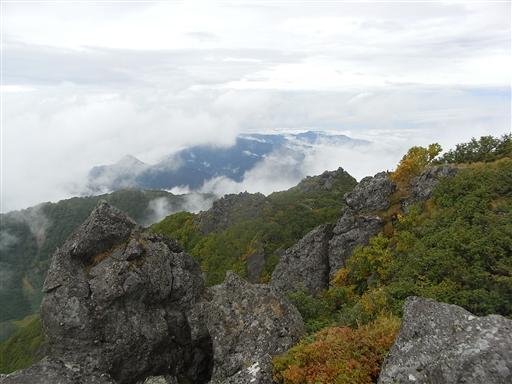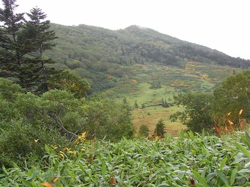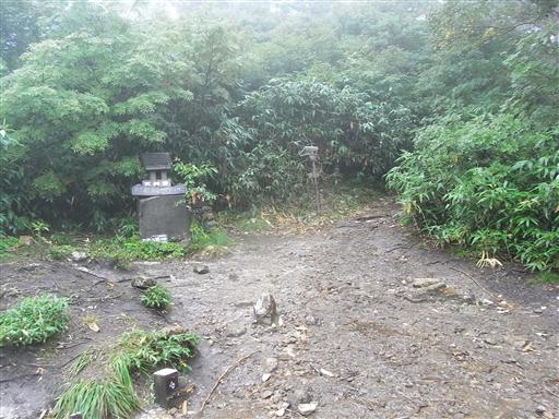 山頂付近に差し掛かると雨も小降りになり、少しだけ視界が開ける。