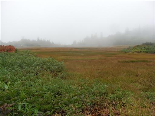 眼下に大きな平地が見えてきた。高谷池ヒュッテはもうすぐ。