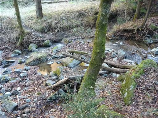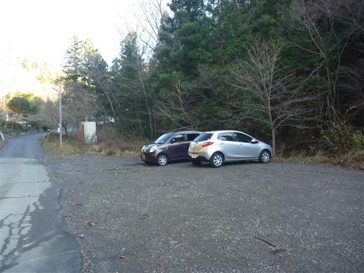 札金沢沿いの道で九鬼山への登山道が二岐に分かれるところに駐車場がある。
