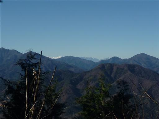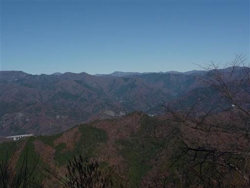 九鬼山山頂から望む中央線沿線の山々。遠くに雲取山が見えている。