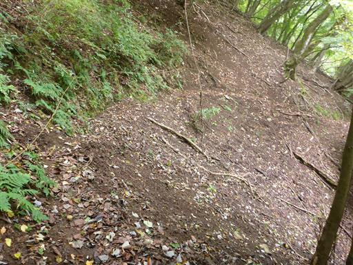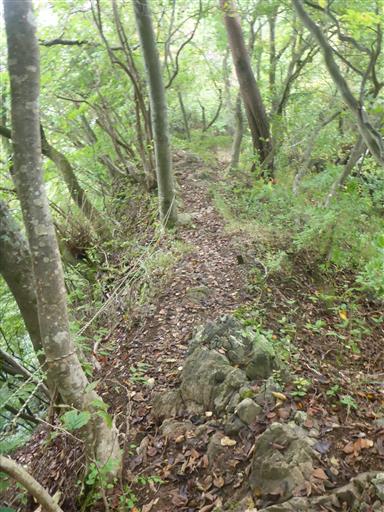 下山道はそこそこ急斜面。とはいえ低い山なので楽々だ。