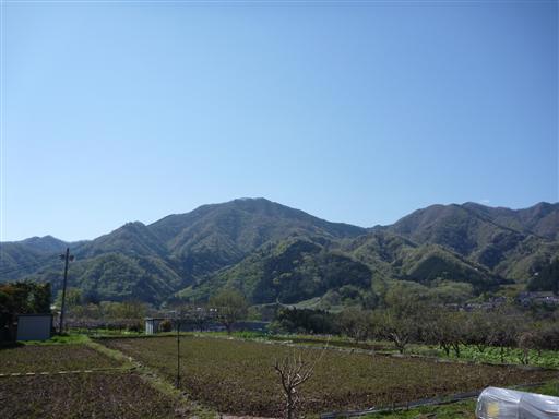 扇山はきれいな扇の形をしているのだが、後ろの山に溶け込んで輪郭が良く見えない。