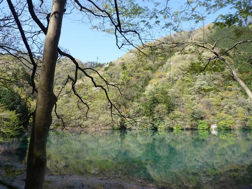 小篠貯水池を通過する。ただの貯水池なのだが、ここの水の色も美しい。