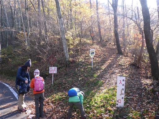曲岳の登山口は駐車場のすぐ側。気温は5℃で寒い。