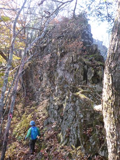 足元に見える岩壁。ところどころに、このような岩峰が見られる。