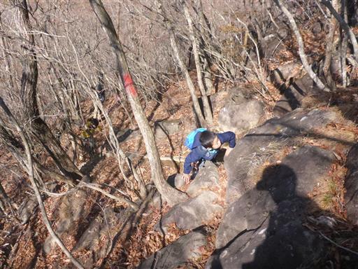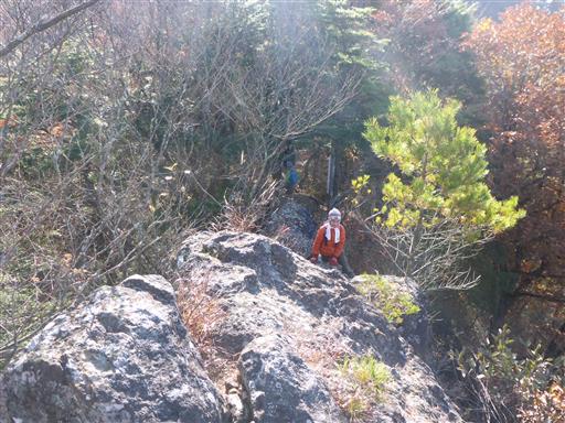 岩尾根を先まで歩く。娘は付いてくるが、息子は怖いらしく自重している。