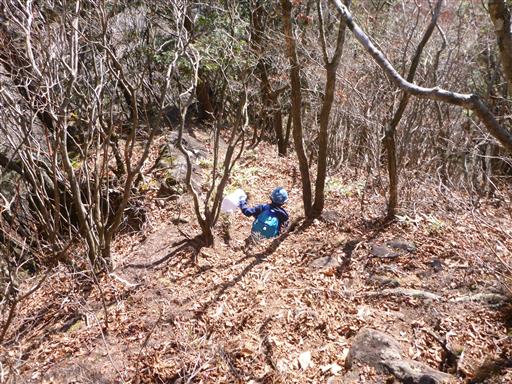下山道もかなりの急斜面。真っ逆さまという様相だ。