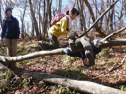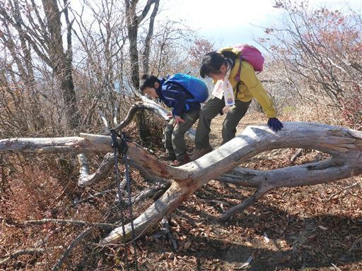 ここにも倒木がある。この倒木は乗り越えないと先に進めない。