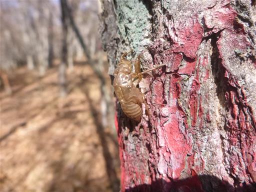 セミの抜け殻。夏からずっと残っているのだろうか?