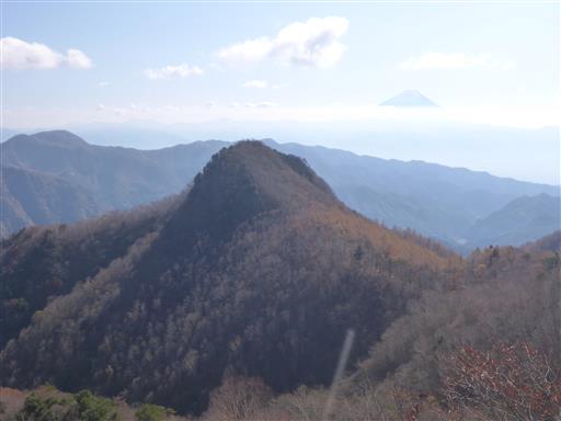 奥に見えるのは富士山、右手前に見えるのは以前登った太刀岡山だ。
