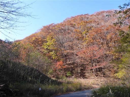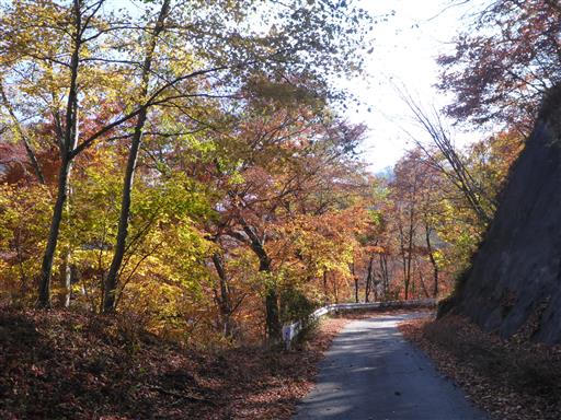 稜線はほとんど紅葉が終わっていたが、車道は正に今が旬だ。