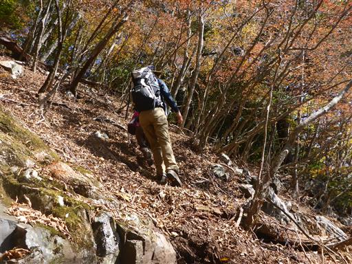急峻な坂につけられた薄い踏み跡を辿って迂回する。