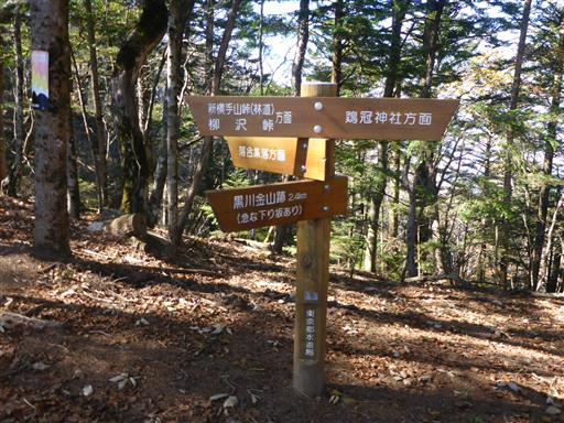 | ルート (Map) | 柳沢峠 (9:21) - (10:28) 六本木峠 - (11:00) 横手山峠 - (11:56) 立岩沢 - (12:45) 黒川鶏冠山 (13:31) - (13:41) 見晴台 - (14:09) 横手山峠 - (14:54) 六本木峠 (15:09) - (15:54) 柳沢峠 |