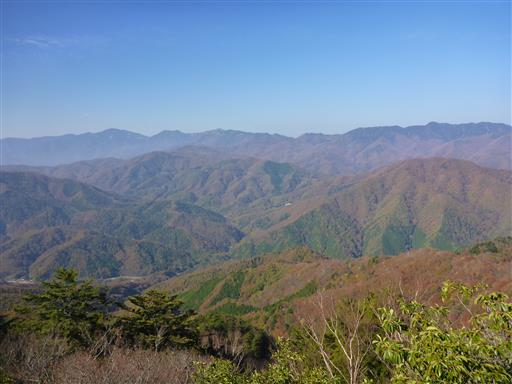 奥多摩方面。左奥に見えているのは、この間登った三頭山だ。
