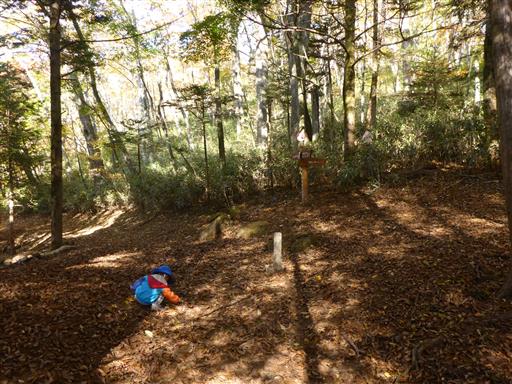 分岐点に到着。尾根にはなぜか登山道が無く、