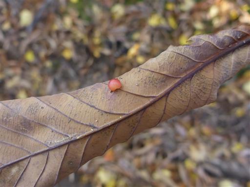 落ち葉に産み付けられたのか、産み付けられた葉が落ちたのか、どちらだろう?