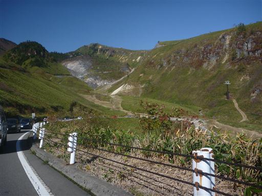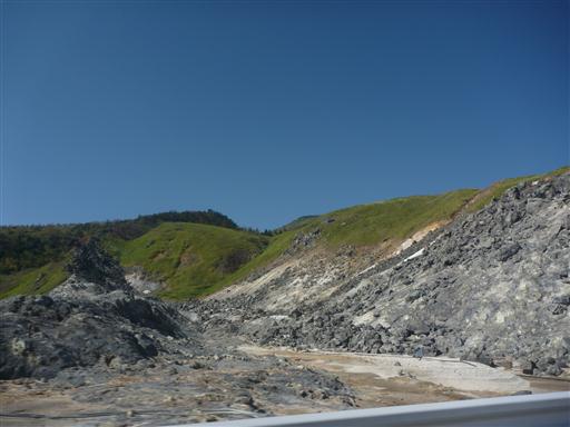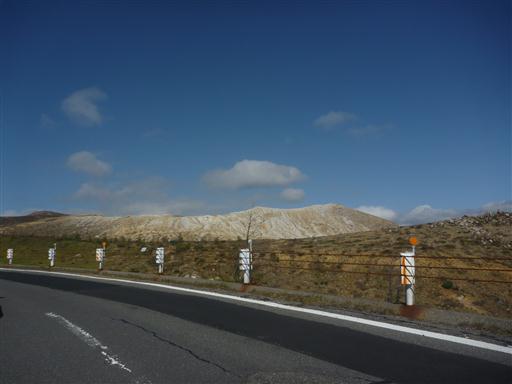 片側交互通行を過ぎてしばらく走ると、目の前に異様な草津白根山の姿が見えてきた。