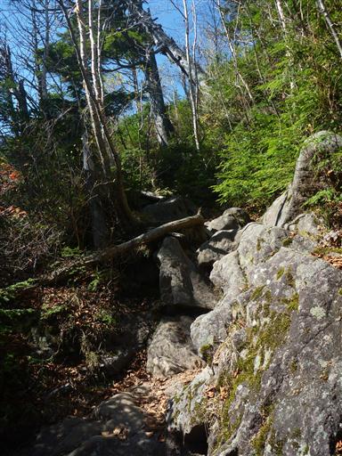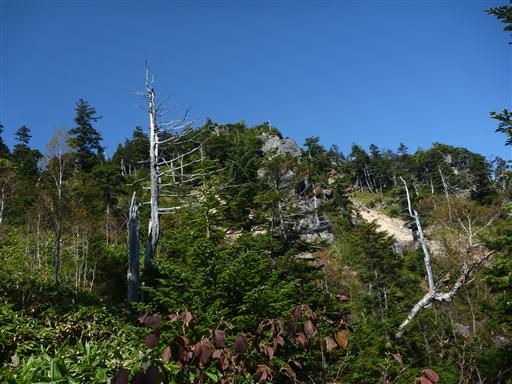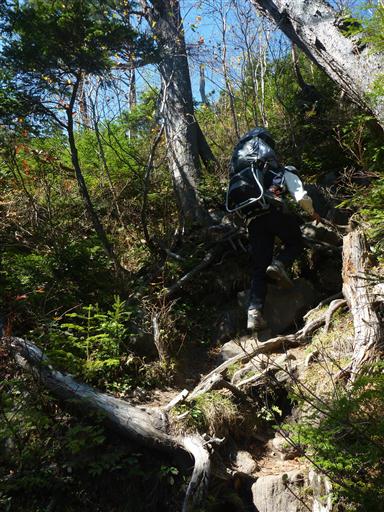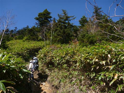 志賀山への登山道は、これまでの平坦な道とは打って変わってかなりの急斜面だ。