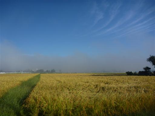 上空はきれいな青空だが、下界には霧が出ている。