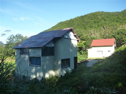 左手に人気のない小屋が何軒か見えている。