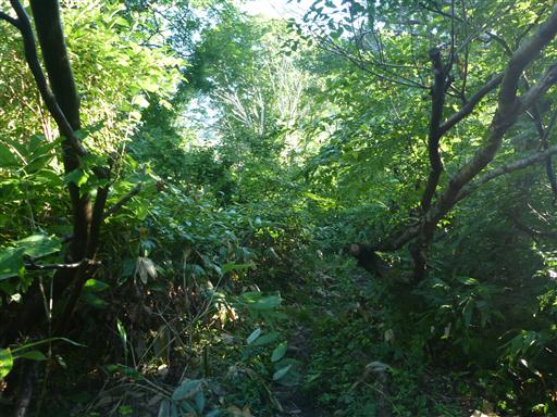 歩いてきた道を振り返る。細い踏み跡があるのみで標識もない。