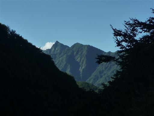 振り返ると大源太山の鋭いピークが天を突いている。