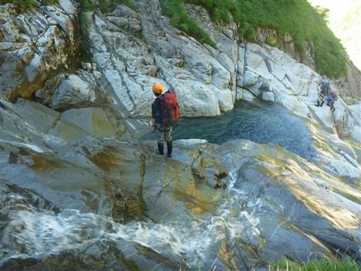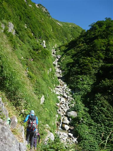 登山道のすぐ傍では沢登りをしている人がいる。