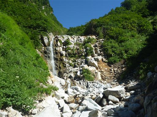 ヌクビ沢を詰めていく。ここまでくると沢はかなり細くなり水量は少なくなる。