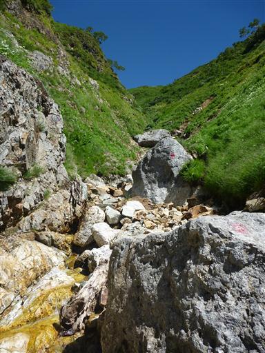 沢を歩けるところは赤矢印を気にせずに進んでいく。