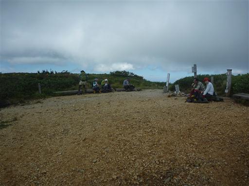 巻機山山頂に到着する。残念ながら雲が出てきた。