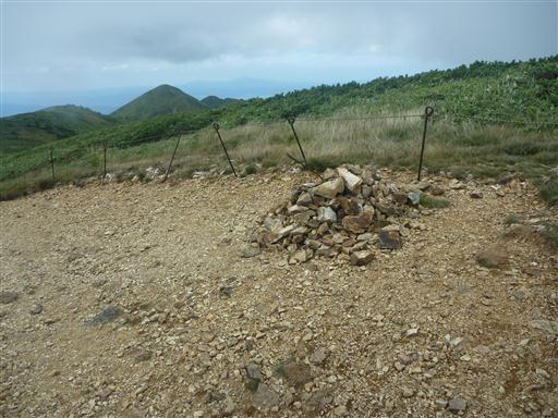 本当の山頂。小さなケルンが積まれているが標識の類は見当たらない。標高1967m。