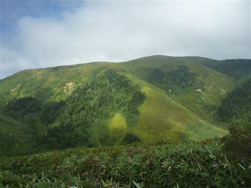 ここからは巻機山の姿が望める。間もなく巻機山山頂も雲に隠されてしまった。