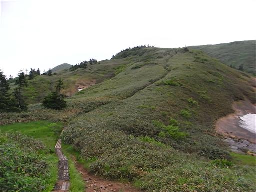 左手に見える丘がおそらく巻機山の最高地点なのだが、