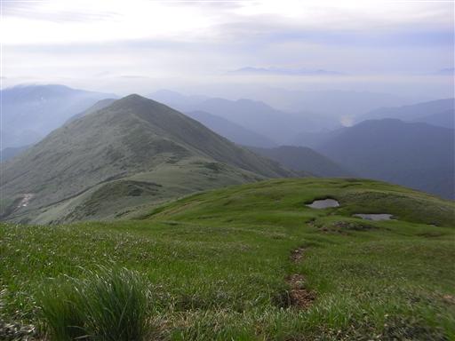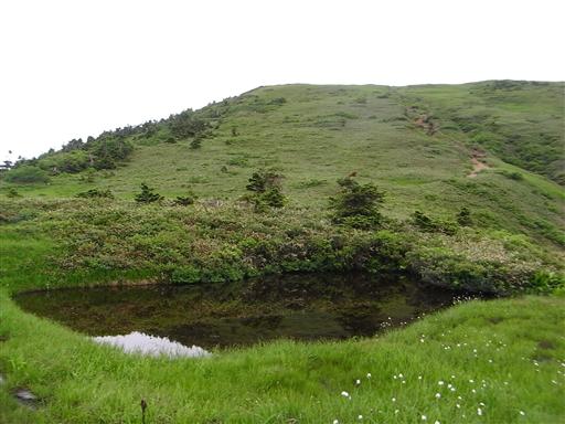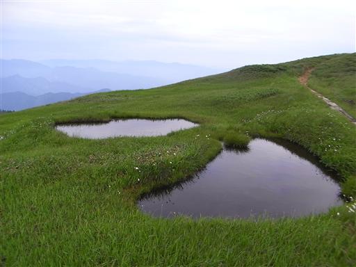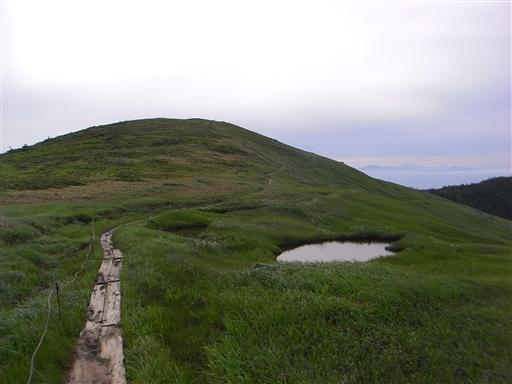 広い山頂の湿地帯。越後や東北地方特有の景観だ。