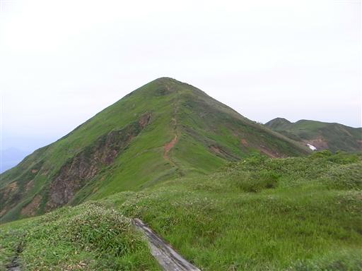 ゆったりとした巻機山の山容。