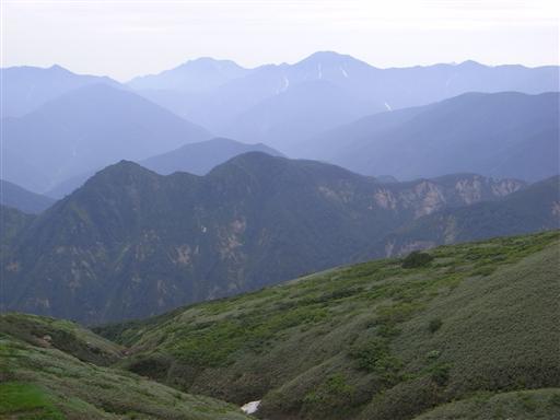 山頂からは北の方に越後三山が望める。