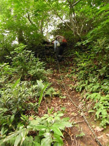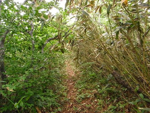 ここから登山道は藪の中に入っていき、展望は全くなくなる。