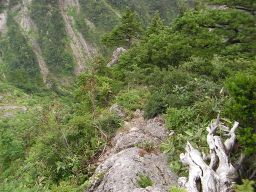 登山道もこの辺りから、かなりのやせ尾根になる。